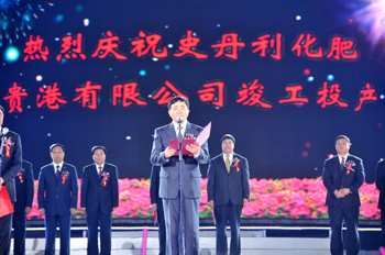 公司董事長高文班、貴港市委書記賴德榮、國家化肥質檢中心(上海)主任劉剛分別致辭,貴港市政府市長唐成良主持投產慶典儀式。