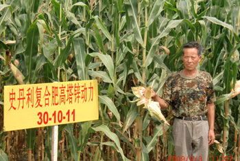 據該村農民鄭洪巖介紹,他今年共種植了30畝玉米,每畝施用史丹利鋅動力復合肥(含量30-10-11)80——100斤,在大旱之年,畝產可望達到1800斤。鄭洪巖高興地逢人就夸:“用史丹利鋅動力,玉米長得快,能抗旱。”(企 劃)